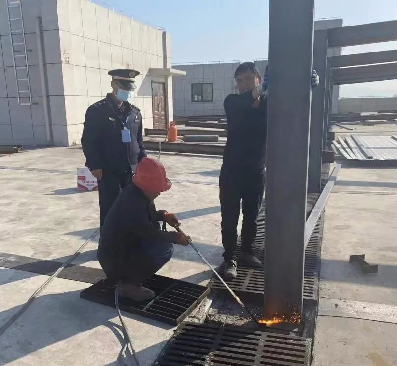 ? ? ? 原來該企業(yè)正在廠房樓頂建設(shè)光伏系統(tǒng),光伏支架已基本搭建完成,然而,該支架最高端高度近3米,最低端高度也有2.2米,明顯不符合光伏組建設(shè)置標準。執(zhí)法人員當場責令該企業(yè)停止施工,并就“光伏建設(shè)相關(guān)要點指南”進行宣傳講解,指導企業(yè)主規(guī)范設(shè)置光伏系統(tǒng),并督促整改。因其逾期不整改,蘇溪大隊組織人員對光伏支架進行拆除。